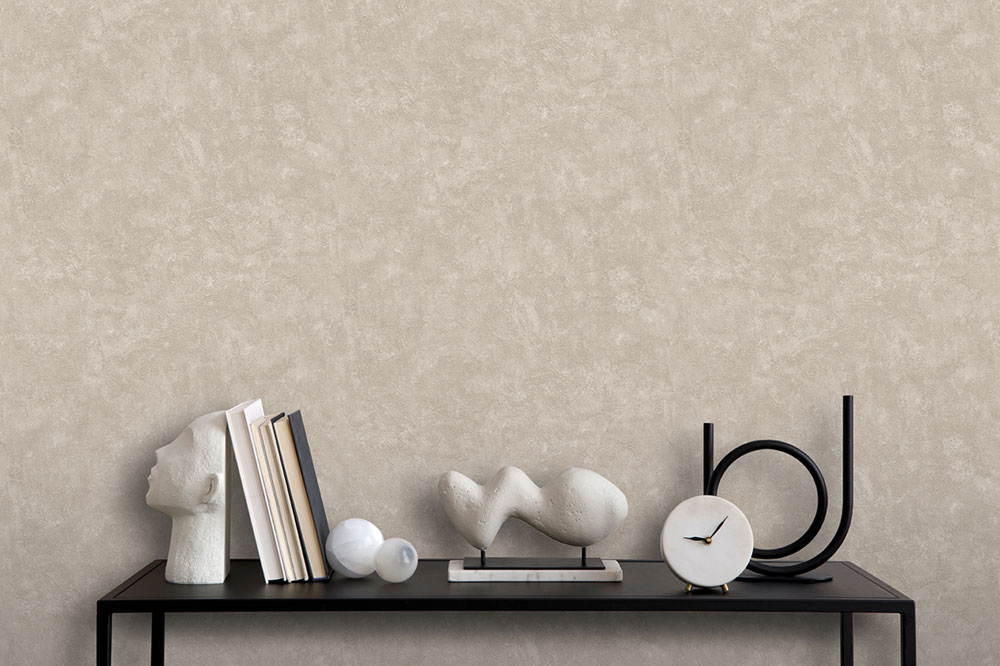 Vliestapete in Beton-Imitation, Farbtönen Taupe/Beige-Grau.