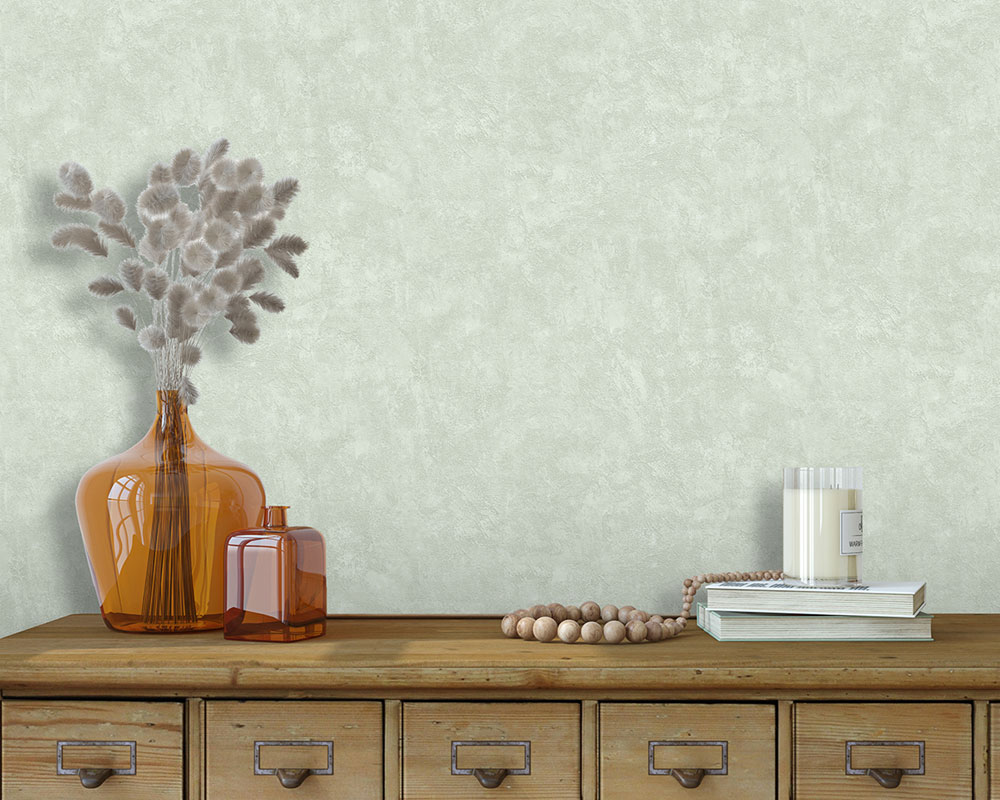 Vliestapete in Betonoptik, Farbtönen von Mentholgrün.