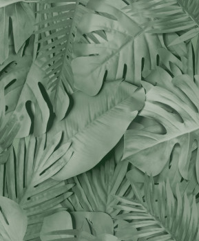 Vliestapete, tropische Blätter in Creme- und Beigetönen.
