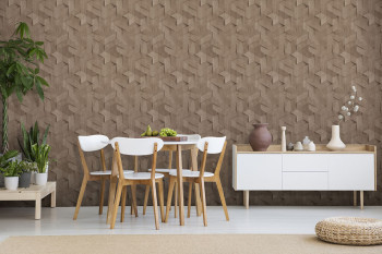 Vliestapete, 3D Holzpaneel-Design in Brauntönen, feine Struktur.