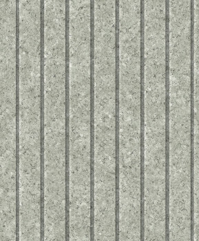 Gestreifte Vliestapete, Korkimitation in Grüntönen.