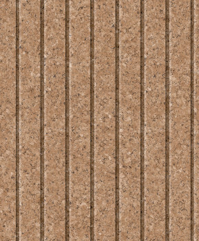 Gestreifte Vliestapete, Korkimitation in Brauntönen.