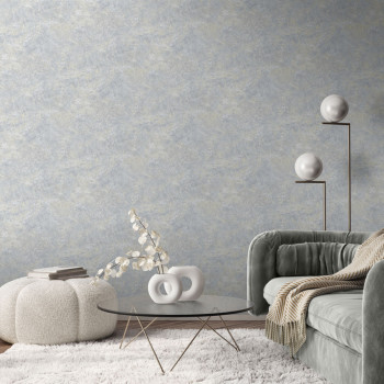 Luxuriöse Vliestapete, Vinyloberfläche, Stuckoptik, Grautöne, Graublau und Silber.