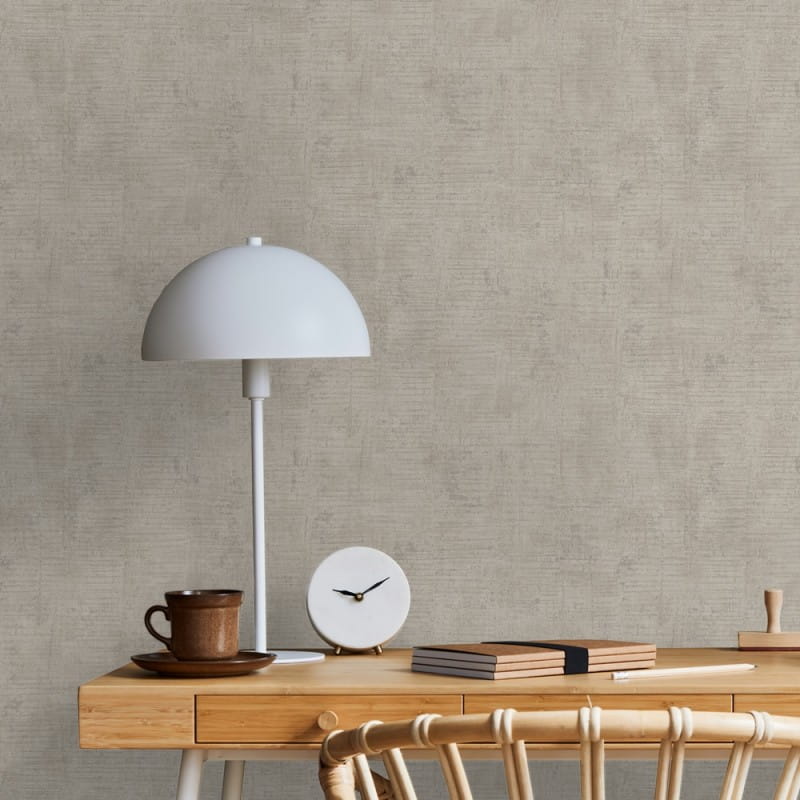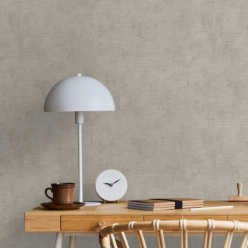 Vliestapete mit Vinyloberfläche, ein an Naturmaterialien erinnerndes Design in Grautönen, mit dezentem, metallischem Silber-Halbglanz.