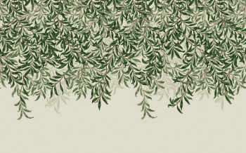 Vliestapete Wandbilder, reiches Muster mit Zweigen in Grüntönen.