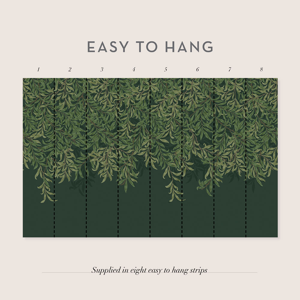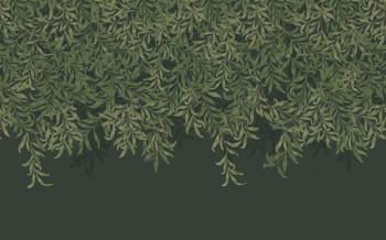 Vliestapete Wandbilder, reiches Muster mit Zweigen in Grüntönen.