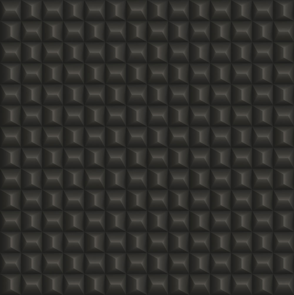 Sanft geprägte Vliestapete mit Vinyloberfläche, geometrisches 3D-Muster in Schwarztönen, metallisch halbglänzend.