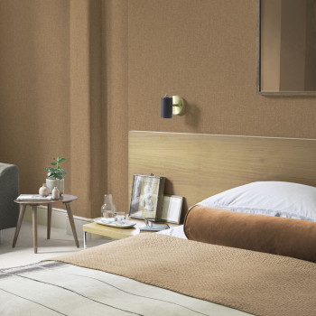 Glatte Vliestapete für die Wand, stoffähnliche Struktur in Brauntönen.