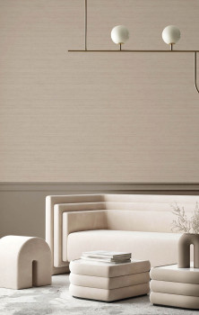 Luxuriöse Vliestapete mit Vinyloberfläche, Shantung-Stoffeffekt in Natur-/Grau-Cremetönen.