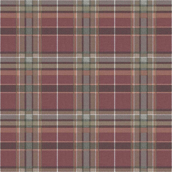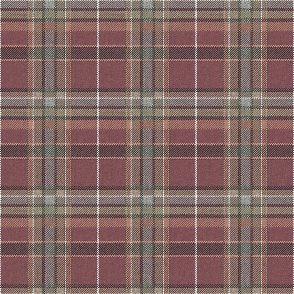 Vliestapete, Schottenstoff-Imitat in Burgunder-, Grau- und Khakitönen.