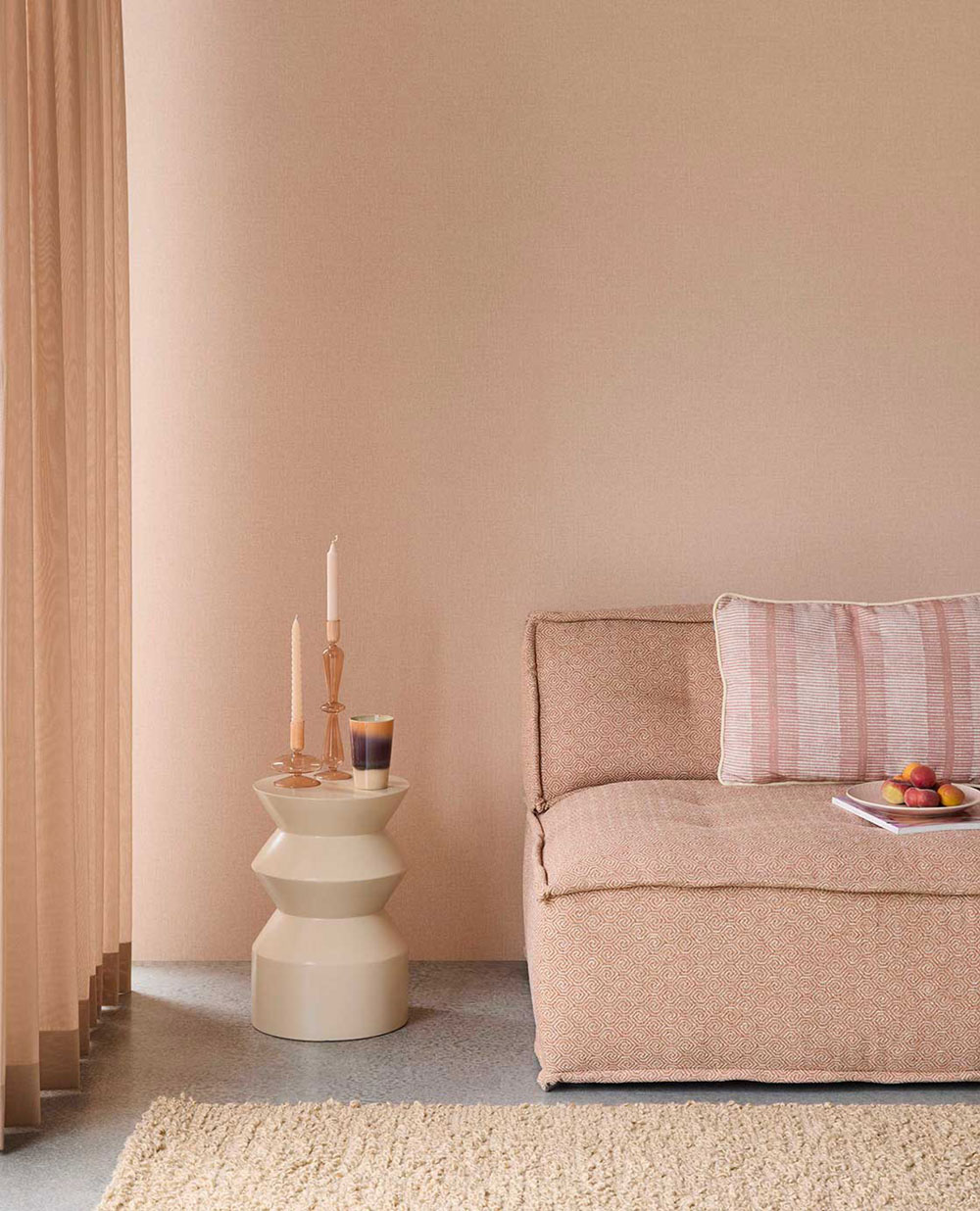 Vliestapete, feine Struktur erinnert an Leinenstoff, Rosatöne.