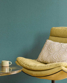 Vliestapete, feine Struktur erinnert an Leinenstoff, Grüntöne.