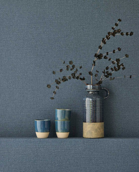Vliestapete, feine Struktur erinnert an Leinenstoff, dunkelblaue Farbtöne.