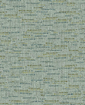 Vliestapete, Imitation von gröberem Stoff in Grüntönen, teilweise Türkis, deutlich geprägte Textur.