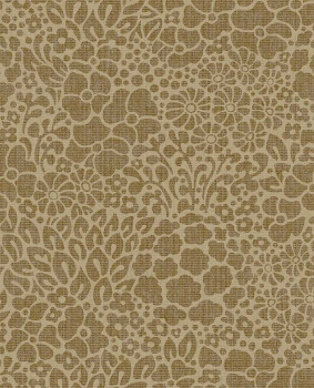 Vliestapete, unkonventionelles Blumenmuster in Brauntönen, geprägte Textur.