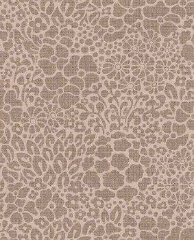 Vliestapete, unkonventionelles Blumenmuster in Altrosa- und Brauntönen, geprägte Textur.