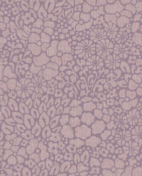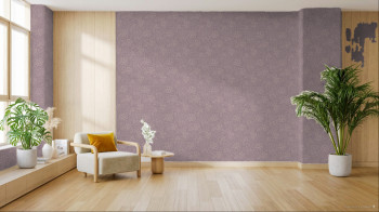Vliestapete, unkonventionelles Blumenmuster in Lilatönen, geprägte Textur.
