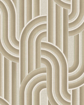 Vliestapete, grafisches Retromuster in Braun- und Beigetönen, feine Struktur.