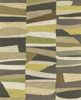 Vliestapete, Imitation einer rustikalen Matte, Grün-, Beige- und Brauntöne.