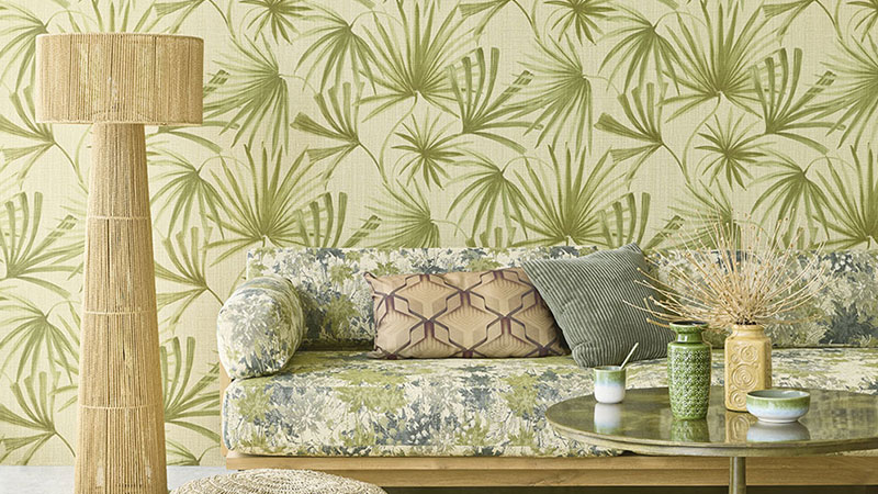 Vliestapete, Imitation eines rustikalen Stoffes, Grüntöne.