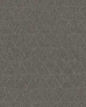 Vliestapete, geprägtes Muster, metallischer Hintergrund, Brauntöne, vereinzelt Goldakzente.