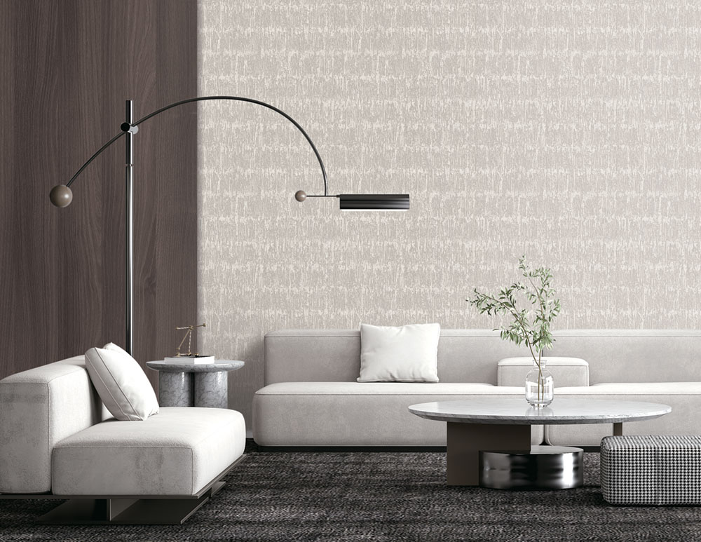 Vliestapete mit Vinyloberfläche, geprägte Textur, halbglänzend grau/graubeige/sand.