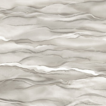 Vliestapete mit Vinyloberfläche, fein geprägte Textur, halbglänzend, Grautöne, teilweise Grau-Silber, Wellen, Marmor.