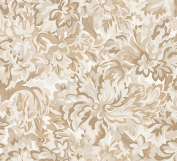 Glatte Vliestapete, florales Muster in Braun- und Beigetönen, matt und sehr fein halbglänzend.