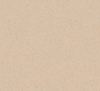 Vliestapete, Stoffstruktur in Beigetönen mit Hauch von Pfirsich, feine silberne Details.