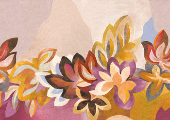 Vlies-Fototapete, florales Muster in den Farbtönen Burgund, Lila, Orange, Blau