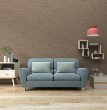Vliestapete, Imitation eines gröberen Stoffes, Braun- und Graubeigetöne mit halbglänzenden Akzenten.
