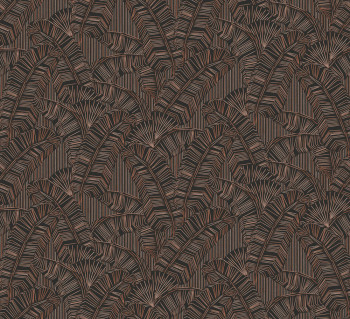 Vliestapete, mattschwarzer Hintergrund, halbglänzende schokoladensilberne Linien bilden Blätter.