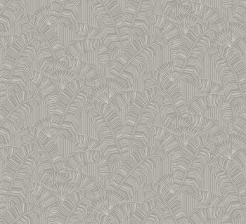 Vliestapete, mattgrauer Hintergrund, halbglänzende grau-silberne Linien bilden Blätter.