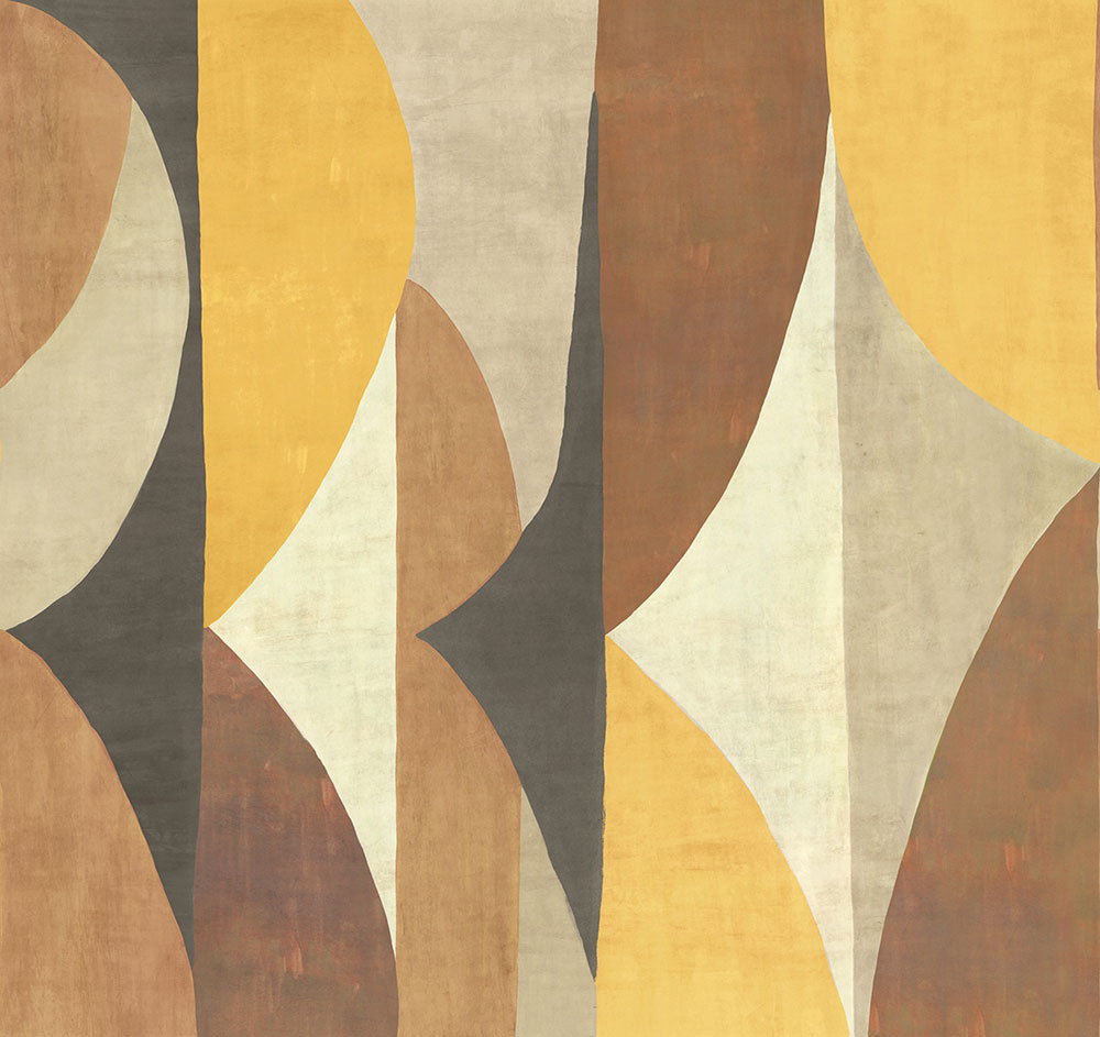 Vlies-Fototapete, dezent geprägt, grafische Muster, Braun-, Ocker-/Curry- und Beigetöne.