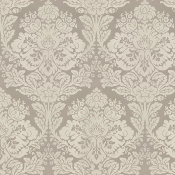 Luxuriöse Vliestapete mit Vinyloberfläche, halbglänzende Braun-Beige-Töne, barockes Damastmuster.