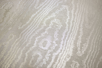 Luxuriöse perlweiße Vliestapete mit Vinyloberfläche, wechselnden Strukturen, halbglänzender Moiré-Effekt.