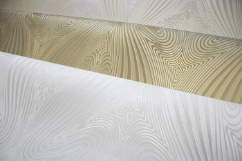 Luxuriöse metallic-creme Vliestapete mit Vinyloberfläche. Je nach Lichteinfall verändern sich die Farbtöne.