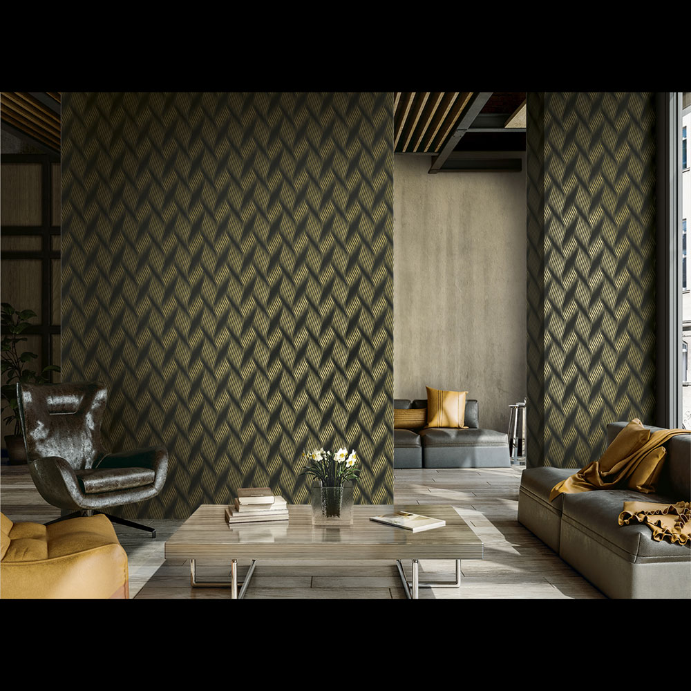 3D-Luxus-Vliestapete in Schwarz und Gold mit Vinyloberfläche.