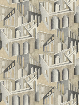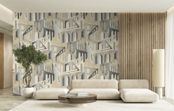 Grafische Vliestapete, Grau- und Beigetöne, architektonisches Design.