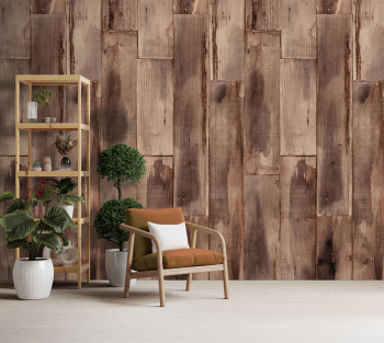 Vliestapete, Holzbrettimitat, Brauntönen.