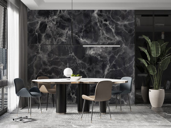 Vliestapete, Marmor in Schwarz- und Grautönen.