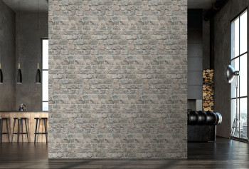 Vliestapete, Ziegel, Ziegelwand in Grautönen.