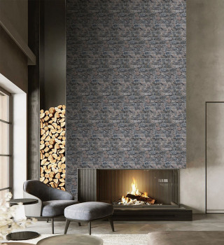 Vliestapete, Ziegel, Ziegelwand in dunklen Grautönen.