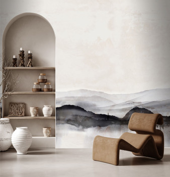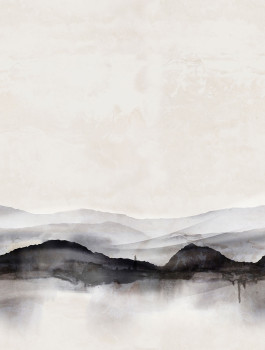 Vliestapete, Motiv Blick auf den Horizont, Grau- und Schwarztöne.