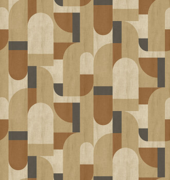 Vliestapete, geometrische Muster in Braun- und Beigetönen.
