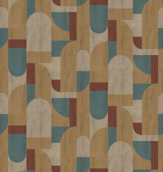 Vliestapete, geometrische Muster in Braun- und Grüntönen.