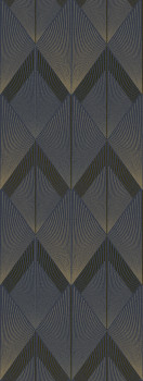 Vliestapete, grafisches Muster im Art Deco Stil, Blau- und Brauntöne.