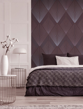 Vliestapete, grafisches Muster im Art-Deco-Stil, Burgundertöne.