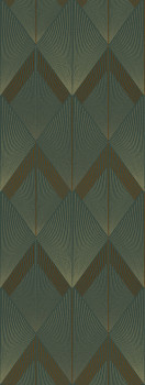 Vliestapete, grafisches Muster im Art Deco Stil, Grüntöne.