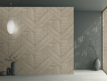 Vliestapete, Imitation von Holzvertäfelungen/Lamellen, Beigetöne, Graubeige.